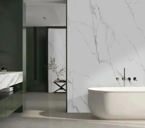 Meno giunture, pulizia più semplice, ridotta formazione di muffe: le grandi dimensioni consentono di coprire aree più grandi con meno cuciture, creando una finitura più senza soluzione di continuità ed esteticamente gradevole. Inoltre, con meno cuciture, la superficie è più facile da pulire e mantenere l'igiene. Ciò è particolarmente utile negli ambienti umidi come i bagni, dove la crescita di muffe e funghi può rappresentare un problema.
